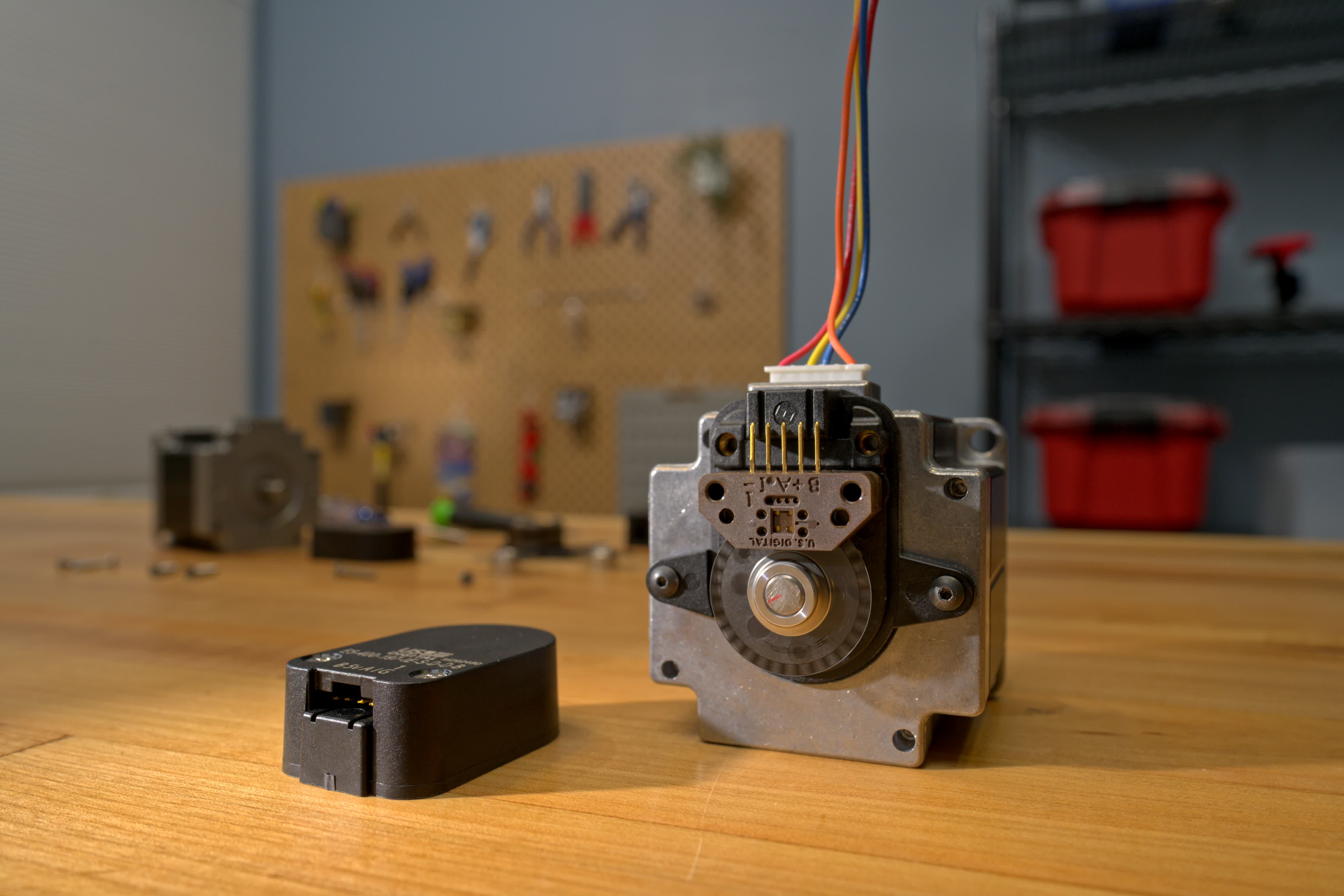 Our E5 and E2 motor encoders, from left to right
